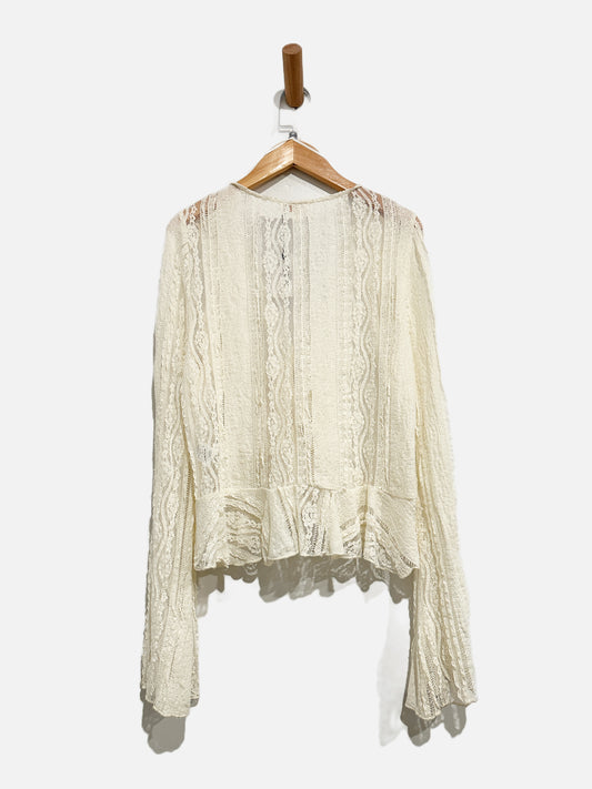 Peach Love Cream w/Brown Star Bell Bottom Jeans - Medium