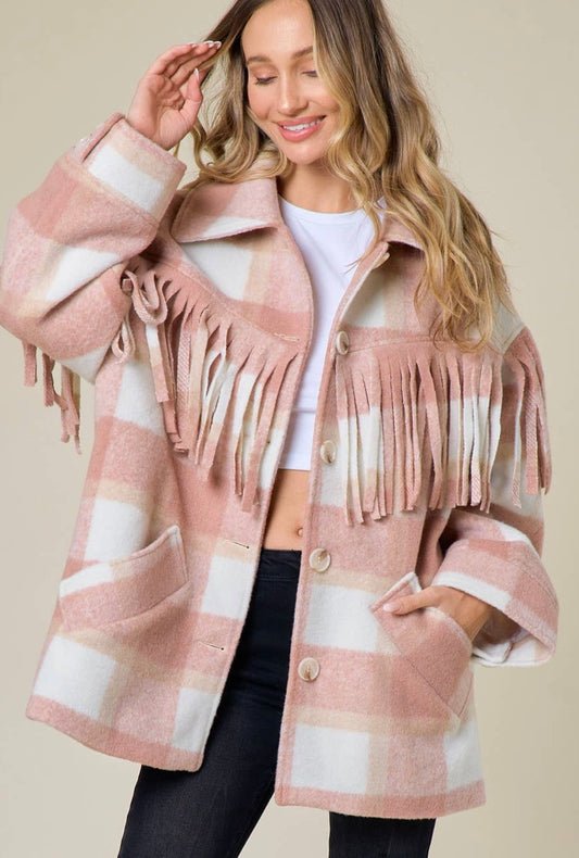 Saints & Hearts NWT Pink and White Flannel Fringe Jacket - M/L