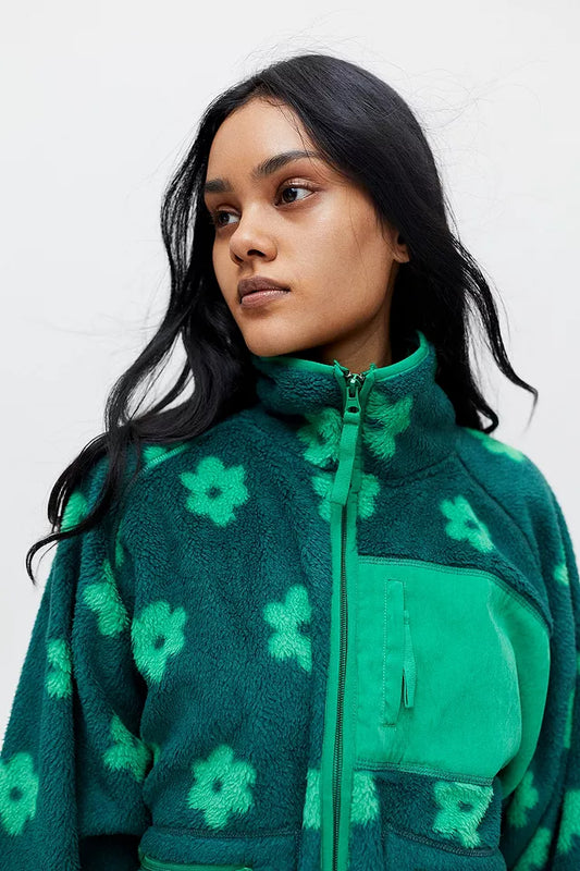 Urban Outfitters Green Floral Fleece Jacket - XS
