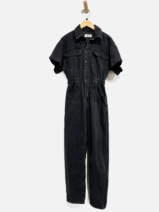We The Free Our Song Blue Henley Crochet Sleeve Top - Small