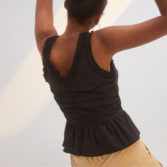 Anthropologie Sunday in Brooklyn Remi Ruffled Peplum Tank in Black Size Medium
