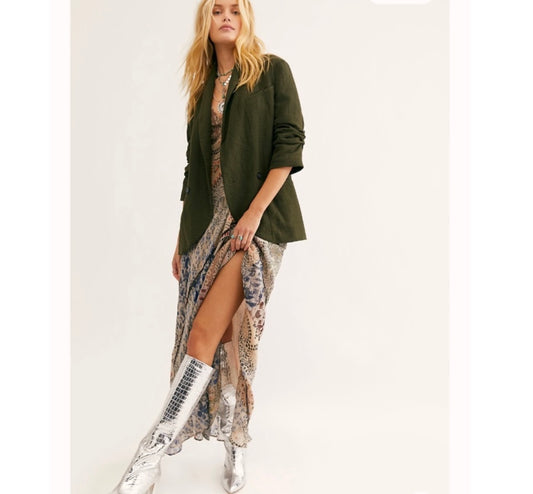 Free People Green/Red Snake Print Wrap Skirt - Small