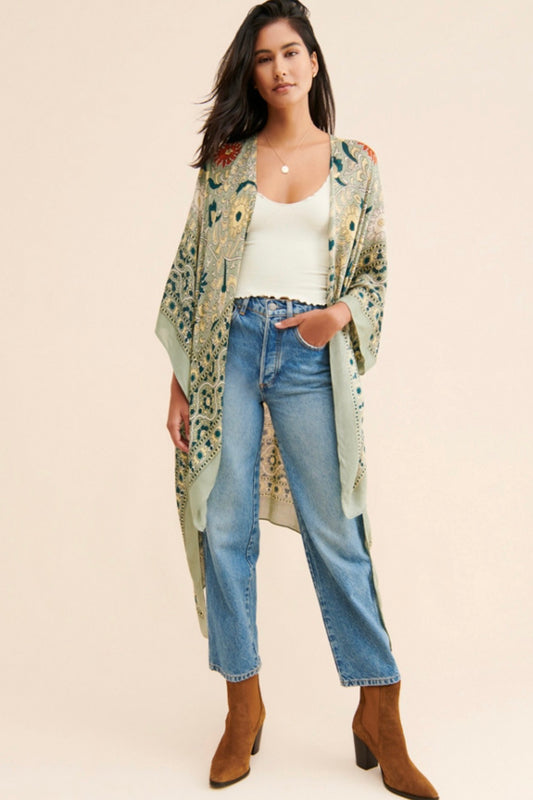 Free People Magic Dance Blue Patterned Kimono - 0S