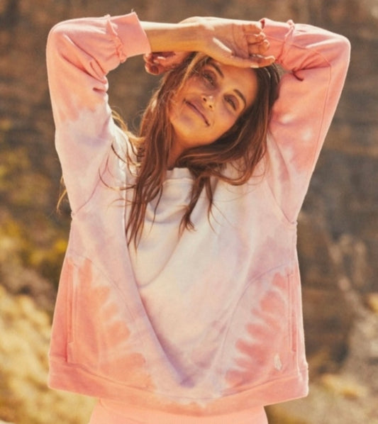 Free People Movement Metti Ombre White/Pink Tie Dye Pullover - XS