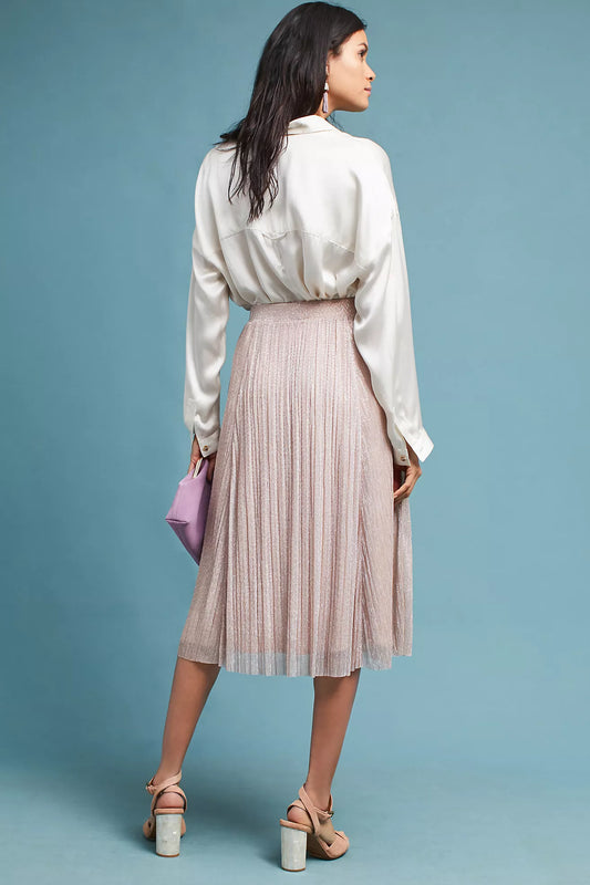 Anthropologie Maeve Pink Lurex Pleated Midi Skirt -XXS