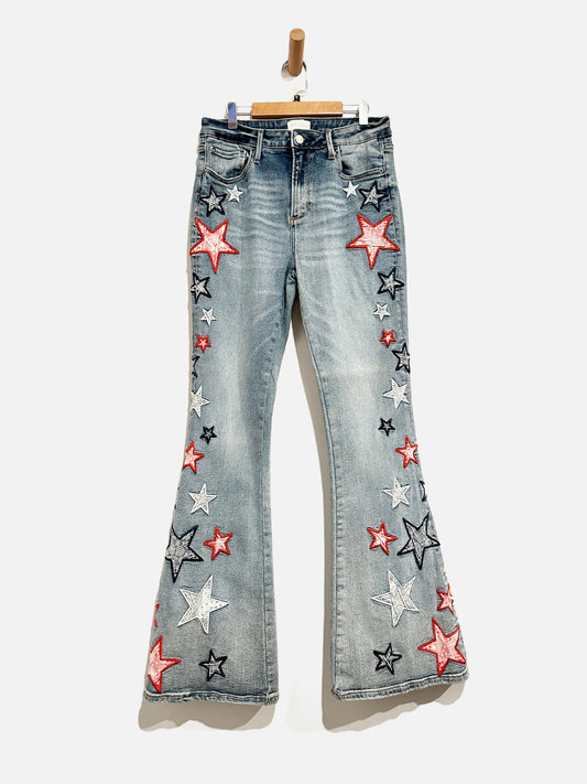 Driftwood x Free People Embroidered Star Flare Jeans - 29