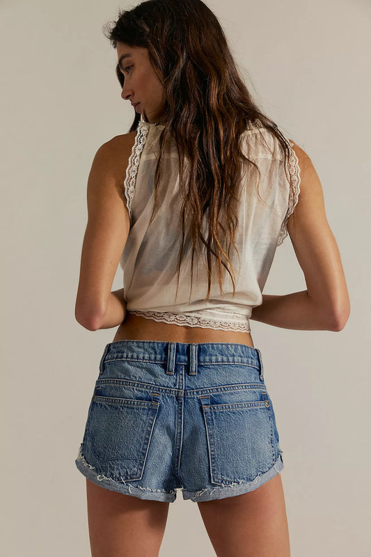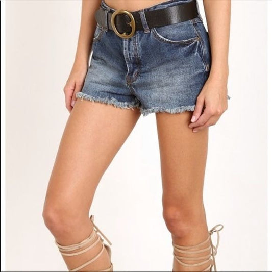Free People Beginners Luck Slouch Denim Cuffed Shorts - 24