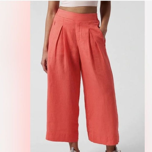 Athleta Playa Linen Wide Crop Pants in Passionfruit Coral Size 14