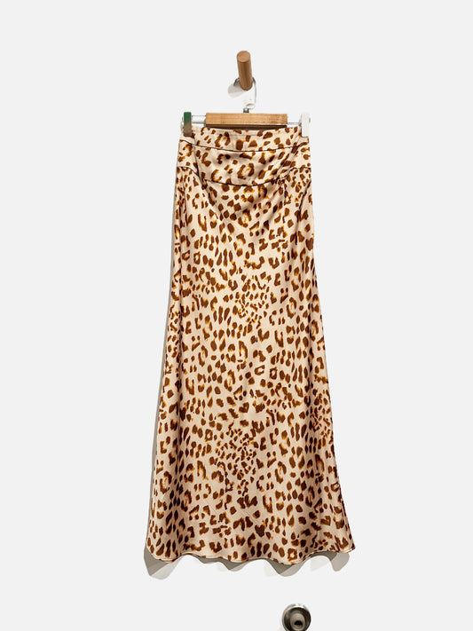 Free People Tan Leopard Print Satin Midi Skirt - 0