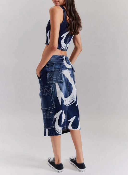 True Religion Denim Paint Cargo Skirt - 26