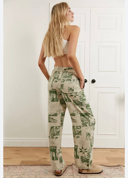 Urban Outfitters Carmen Pull on Green Printed Pants - XS