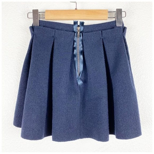 Lanvin Petite Navy Wool Blend Pleated Skirt Size 4