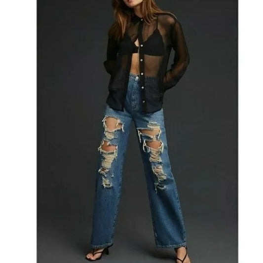 Anthropologie Pilcro The Joey High Rise Distressed Wide Leg Jeans Size 29
