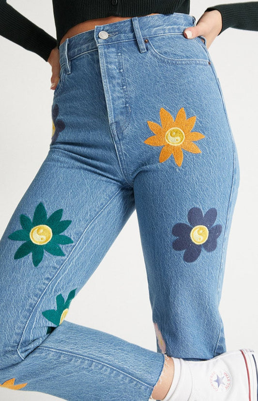 Pacsun Floral Smiley Face High Rise Embroidered Jeans - 25