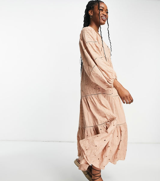 Asos Design Pink Floral Eyelet Maxi Dress - 4