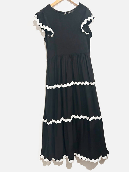 Zessica Black and White Scallop Midi Dress - Large