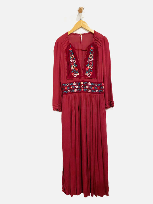 Free People Red Embroidered Midi Dress - Small