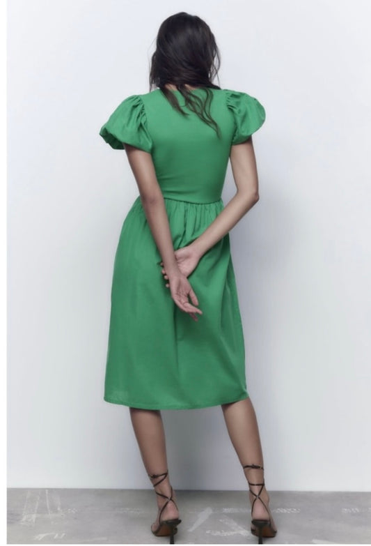 Zara Green Puff Sleeve Midi Dress - Large