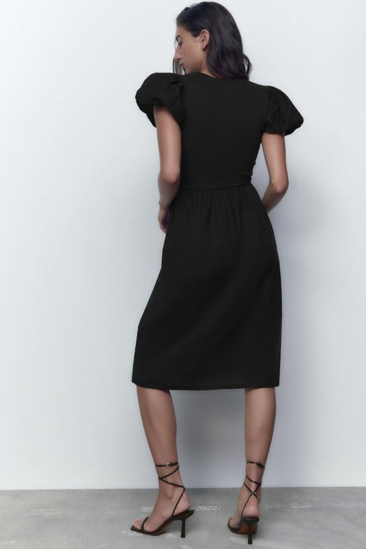 Zara Black Puff Sleeve Midi Dress - Large