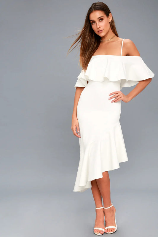 Lulus White Flutter Ruffle Midi Dress - Small
