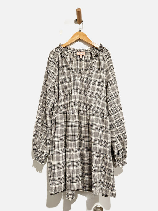 Show Me Your Mumu Birdie Black and White Windowpane Mini Dress - Medium