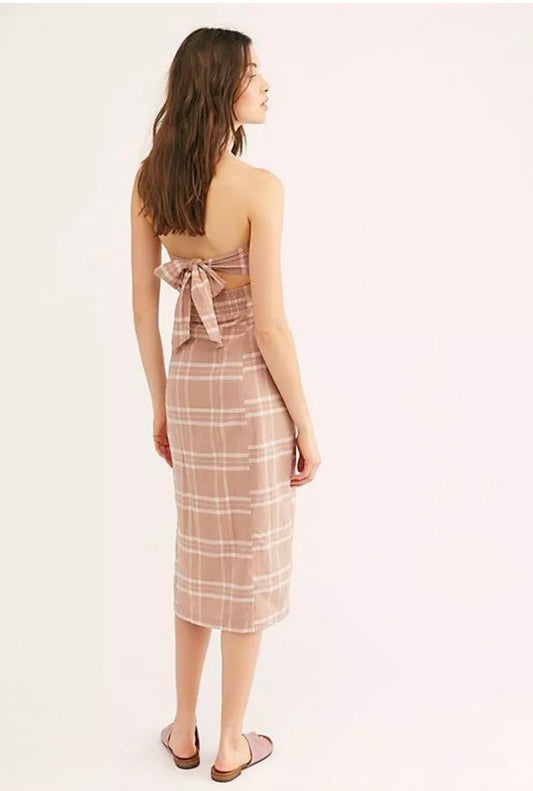 Free People Brown and White Plaid Sleeveless Midi Dress - Small