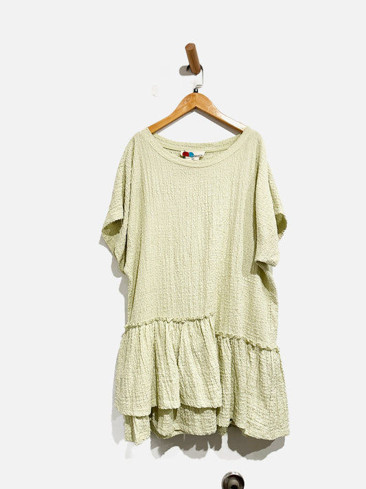 Free People Beach Green SS Ruffle Mini Dress - Small