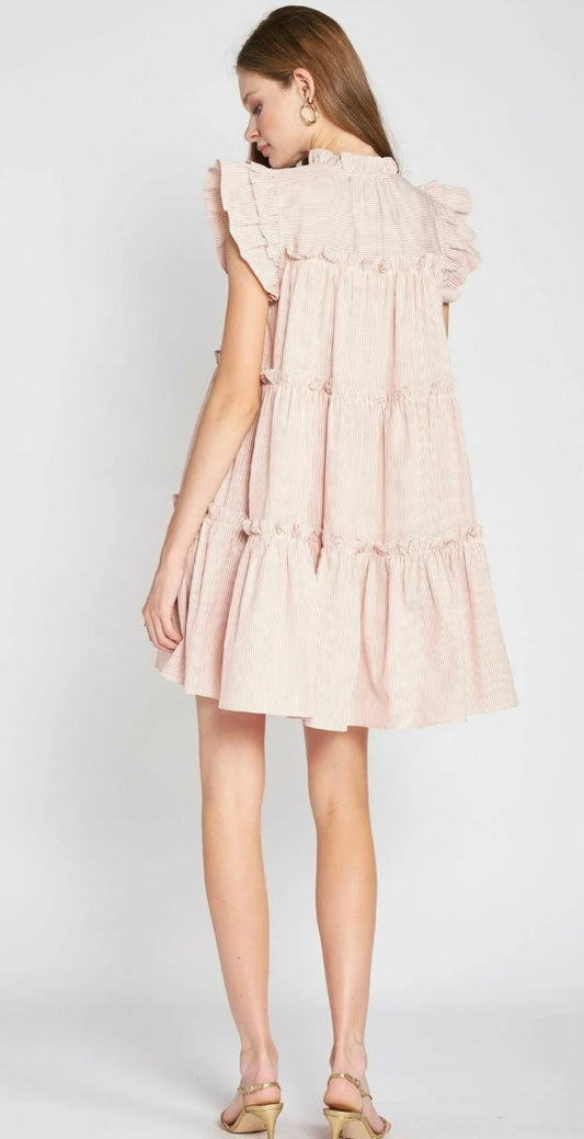 Anthropologie Maeve Brown and White Stripe Dress - Medium