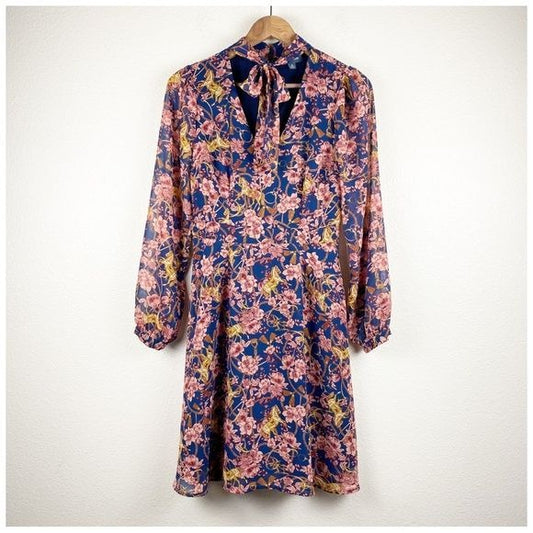 ModCloth Blue & Pink Floral Long Sleeve Horse Dress Size 6