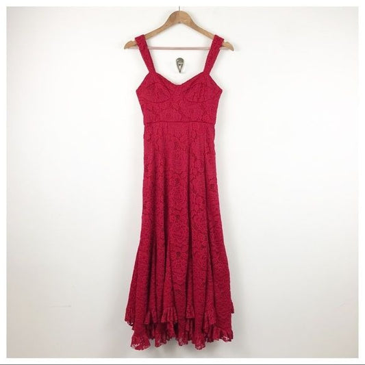 Anthropologie Hutch Seamed Lace Midi Dress in Red Size 0