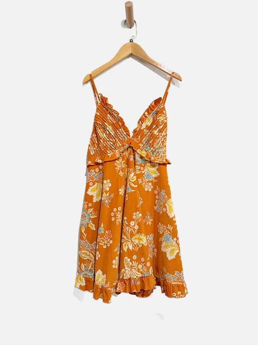 Free People Orange Corduroy Floral Mini Dress - Medium