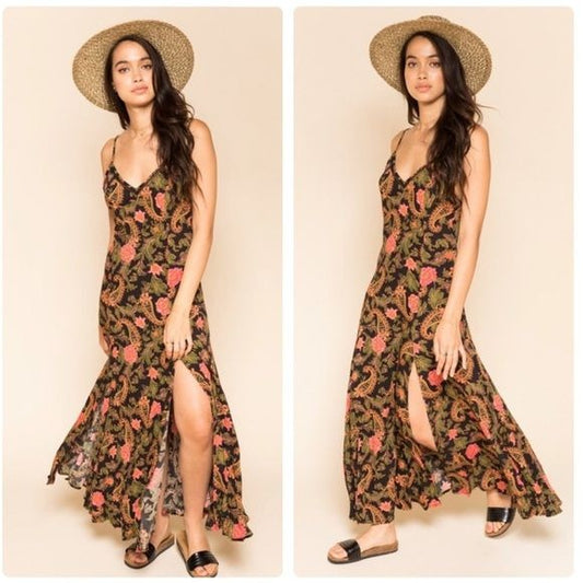 Wet Seal Vintage Paisley Slinky Dress - M/L