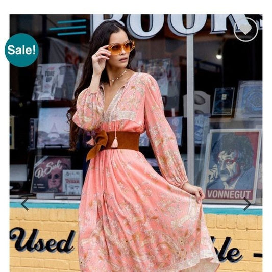 Spell And The Gypsy Collective Hendrix Boho Midi Dress in Dusty Pink Size Small