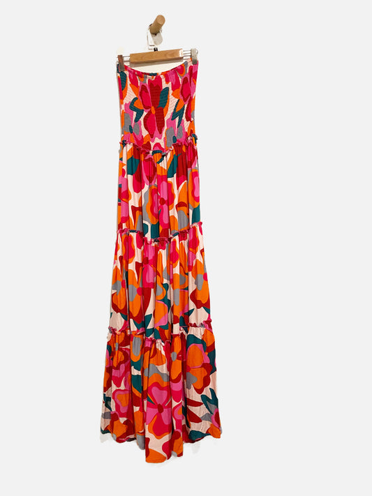 Abel the Label Pink Floral Smocked Strapless Midi Dress - Small