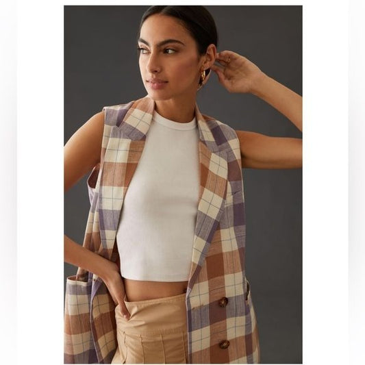 Anthropologie Hutch Classic Longline Plaid Vest Size XS