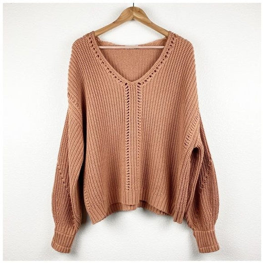 Gentle Fawn Arizona Chunky V-Neck Sweater in Clay Size XL