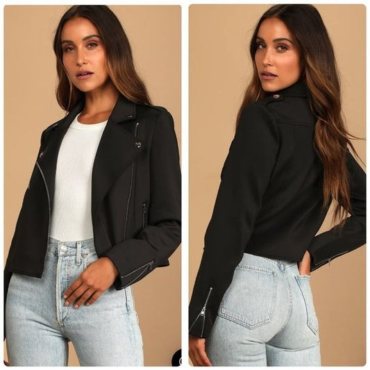 Lulus Living On the Edge Black Moto Jacket Size XL