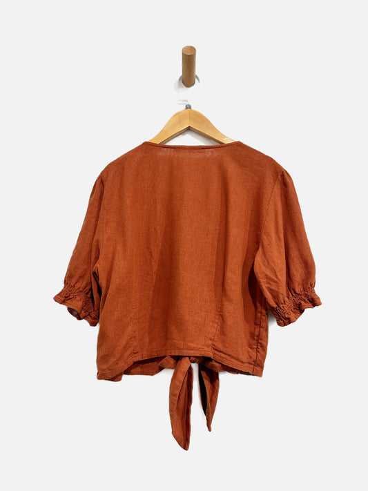 Abercrombie & Fitch Orange Linen Tie Top - Large