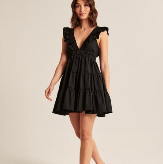 Abercrombie & Fitch Black Ruffle Mini Dress - Large