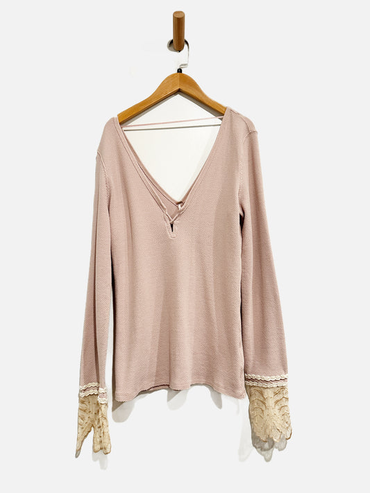 Free People Last Dance Pink Lace Cuff Shirt - Large