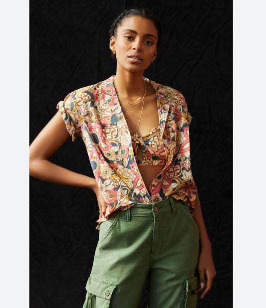 Anthropologie Pilcro Cream/Pink Floral Button Down - Large