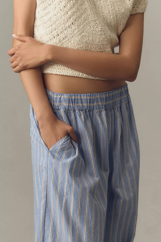 Anthropologie Blue Cotton Stripe Joggers - Large