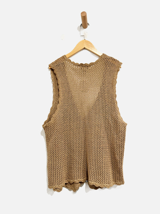Vintage Gina Peters Summery Taupe Crochet Vest - Large