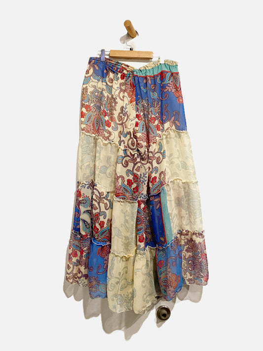 Z&L White/Blue Paisley Print Boho Pants - Large