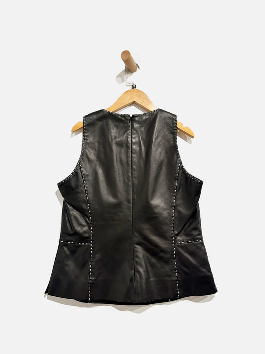 Worth Vintage Black Leather Vest w/Stitching - 6