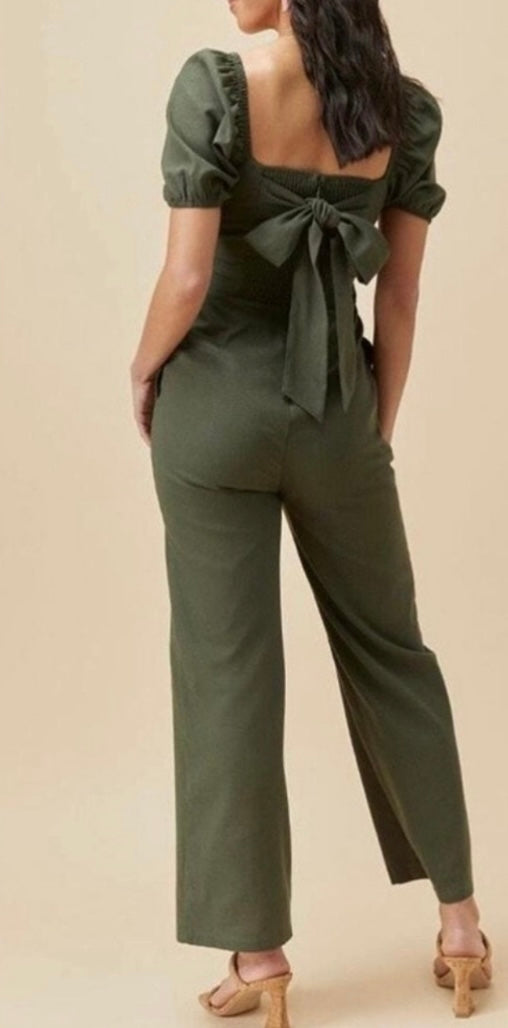 Audrey Parks Green Linen Jumpsuit - Medium