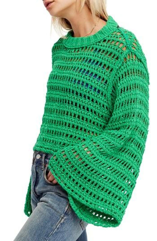 Free People Caught Up Crochet Top in Kelly Green - Small