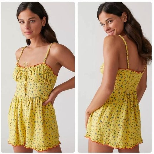 Urban Outfitters Betti Print Linen Romper Size Small