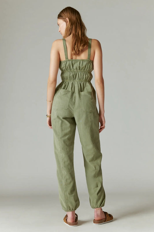 Lucky Brand Tie Front Green Utility Jumpsuit - Small