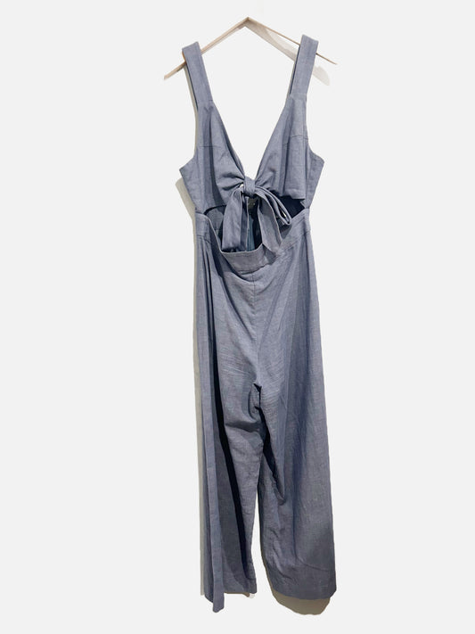 We The Free Our Song Blue Henley Crochet Sleeve Top - Small